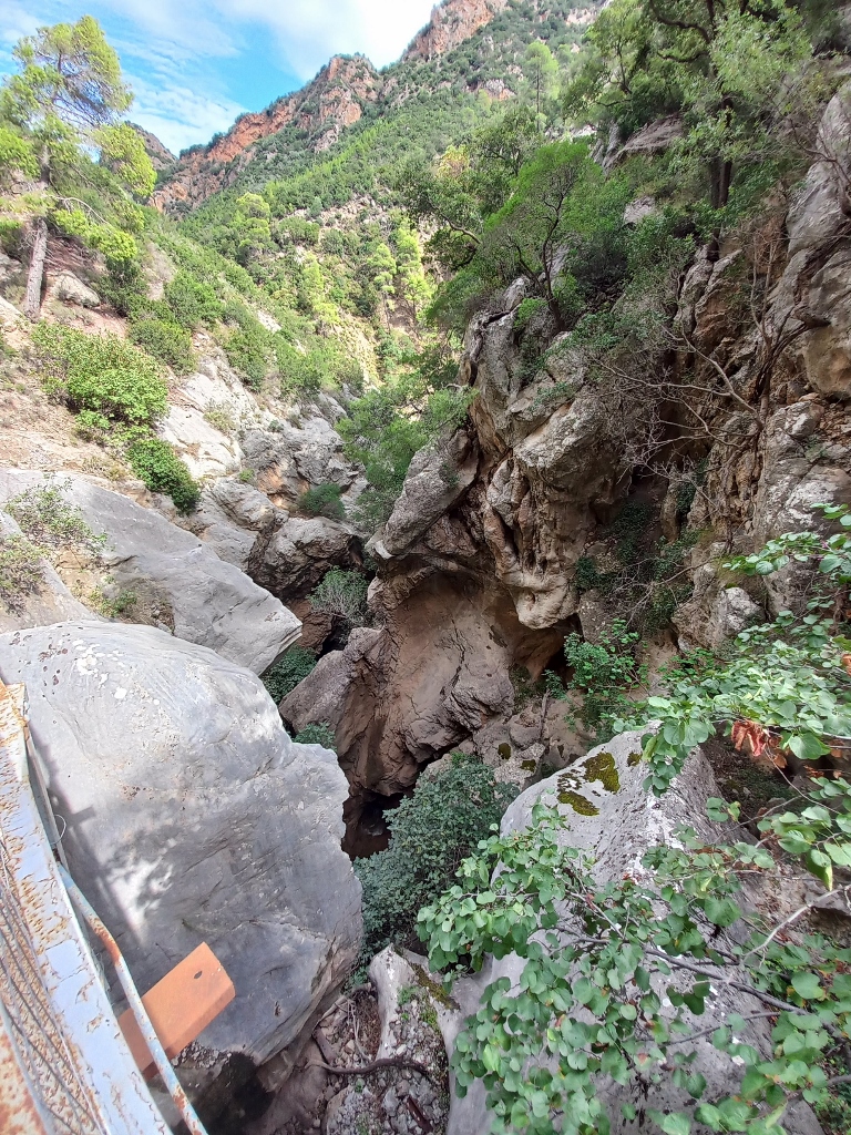 A onda, kao da je priroda htela da kaže kako mora da se zna da je ona glavna, gotovo na samom izlazu iz klisure naišla sam na najveći odron – zapravo je to bilo pravo klizište sa ogromnom količinom kamenja i zemlje. U trenutku sam oklevala jer sam se pitala da li je sve to dovoljno stabilno, da li je imalo vremena da se stabilizuje (imajući u vidu da se sve to dogodilo samo dan-dva ranije) i da li je bezbedno da ja hodam po tome. Takođe sam razmatrala i svoje opcije, da li bi mi bilo bolje da se vratim do železničke stanice Mikrohelidu pa da tamo onim zemljanim putevima probam da dođem do neke civilizacije, ili čak da se spustim do reke, pa tu vidim kakva je situacija. Na kraju sam se odlučila da prođem pravo preko te gomile zemlje i kamenja. Moram da priznam da mi uopšte nije bilo prijatno i osetila sam priličan stres. Uz maksimalnu koncentraciju, gledajući veoma dobro koje su moguće putanje, gde se nalazi drveće koje deluje da stabilno stoji, kao i gde tačno stajem, popela sam se na sve to i onda što sam brže mogla prešla sam tih nekih stotinak metara da bih se onda konačno bezbedno spustila sa druge strane.