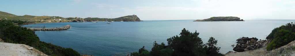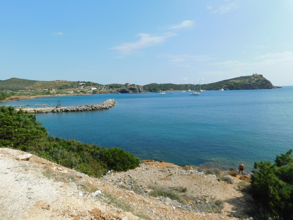 Pošto je lokalitet na vrhu uzvišenja, bilo mi je zanimljivo i da odatle snimim deo Atike severno od rta, a takođe i područje odakle kreće to manje poluostrvo na kojem je rt Sunion (meni iza leđa na sledećoj slici).