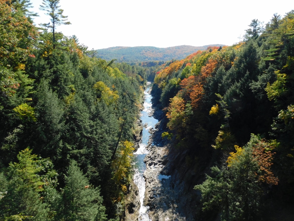 A nakon što smo uživale u ovom neplaniranom i neočekivanom poklonu, jer mi zapravo nismo ni imale nikakve podatke o ovom mostu i o klisuri i tu smo prošle i zaustavile se sasvim slučajno, sele smo u kola i nastavile dalje sa vožnjom. Sada je pred nama bila jedna dosta duga deonica od oko 150 km, ali smo sve vreme bili u Vermontu. Daniela je i dalje vozila, a kao što sam već ranije pomenula ja sam joj bila veoma zahvalna da je ona bila za volanom jer je to meni omogućavalo da ponovo fotografišem. Ova deonica je skoro u potpunosti bila u vidu auto-puta, tako da i slike to prenose. Samo bih pomenula da je bio početak oktobra i mada su boje lišća bile veoma impresivne i kako se već može očekivati u Vermontu u jesen, verujem da kontrasti boja još više postaju izraženi krajem oktobra, a možda i kasnije. Zimi je sve ovo po pravilu prekriveno snegom.