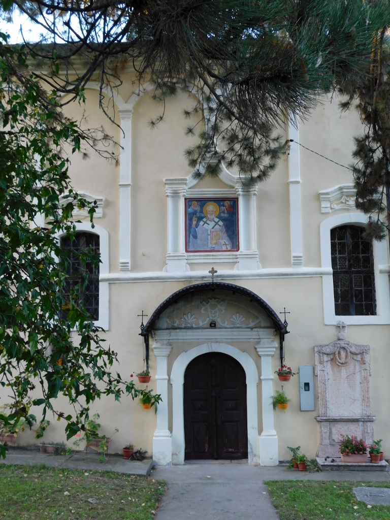 Zato sam se samo odvezla do centra Iriga i tamo parkirala kola, pa sam u završno obilaženje krenula peške. Prvo sam otišla do crkve Sv. Nikole. Pošto je ova crkva podignuta na padini, do nje može da se dođe i sa donje i sa gornje strane. Ja sam se odlučila za gornju stranu, a prilaz crkvi je omogućen zahvaljujući širokom stepeništu koje se pruža pored ograde crkvene porte. Međutim, ono što je meni ovde bilo najupadljivije je, čini mi se, neuobičajeno visok zvonik.