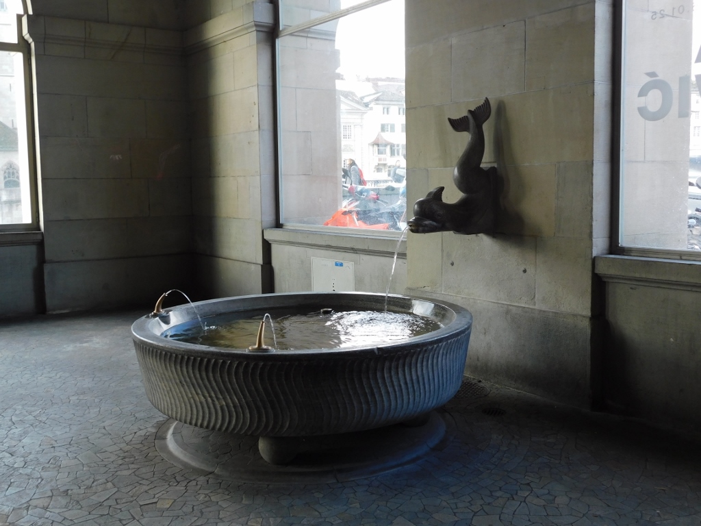 Umesto toga sam se spustila do poznatog trga pored zapadne obale reke Limat koji se zove Vajnplac. Na trgu se posebno ističe veoma lepa česma na kojoj se nalazi figura vinogradara koji nosi svoju korpu sa grožđem.