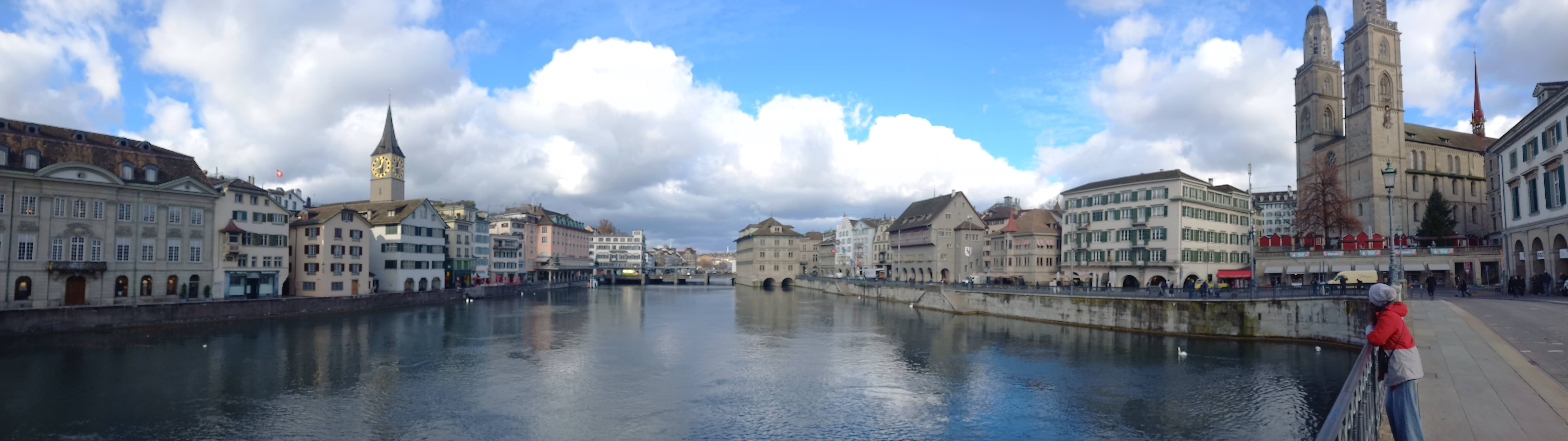 Sa mosta sam mogla lepo da vidim i nizvodni tok reke Limat, kao i delove Ciriha kroz koje sam već prošla, a u kojima se nalaze neka od znamenitih mesta – crkva Sv. Petra, Gradska većnica i katedrala.