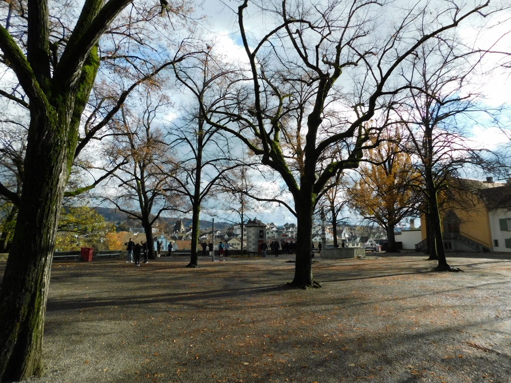U pitanju je plato Lindenhof koji se nalazi na vrhu uzvišenja, a koji je prošaran drvećem. Ono sigurno leti stvara prijatnu senku, ali u novembru 2024. to nije bio slučaj, a nije bilo ni potrebe jer sunce ipak nije bilo jako.