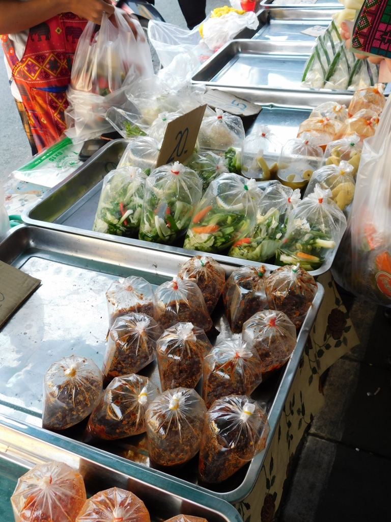 Moram da priznam da nisam baš uživala u hodanju ulicama Bankoka uz puno saobraćaja i buke, a sve uz temperaturu koja je bila u porastu. Ipak, nije mi se mililo ni da uzimam taksi ili neki drugi prevoz, jer mi je hotel bio srazmerno blizu i ovako sam mogla ipak da se polako upoznajem sa gradom. Tako sam prošla i pored Narodne biblioteke, ali mi je ipak bilo najzanimljivije kada sam prolazila pored tezgi sa hranom na koje se u Bankoku pre ili kasnije naiđe. Čak i kada se ne kuva na tim tezgama, moguće je kupiti kompletna jela veoma vešto spakovana u najlon-kesice, a tu su naravno i deserti.