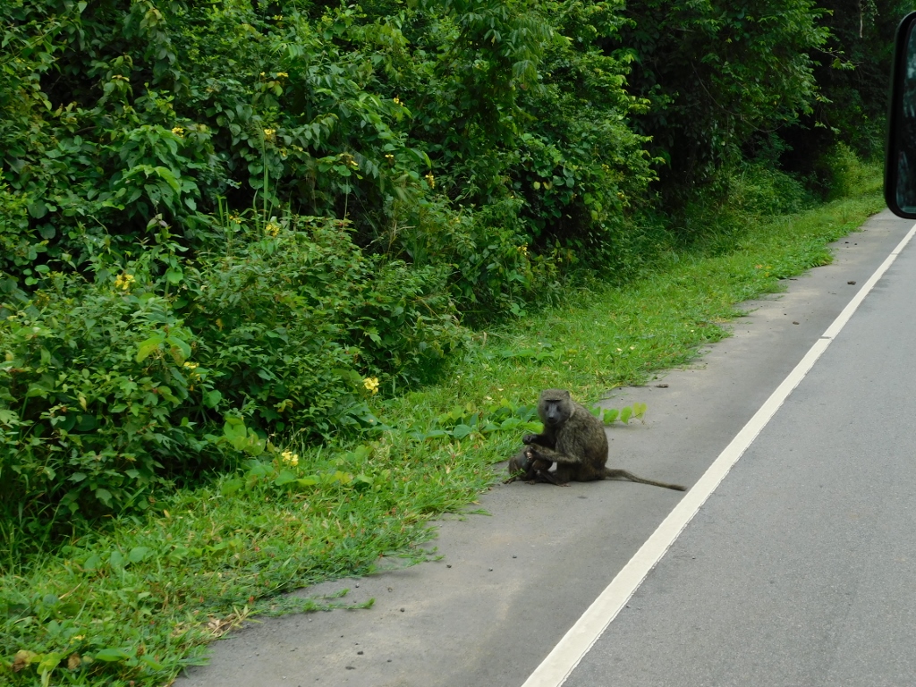 Mi šimpanze nismo videli, oni su dublje u šumi, ali zato pored puta, a i na njemu, često mogu da se vide pavijani.