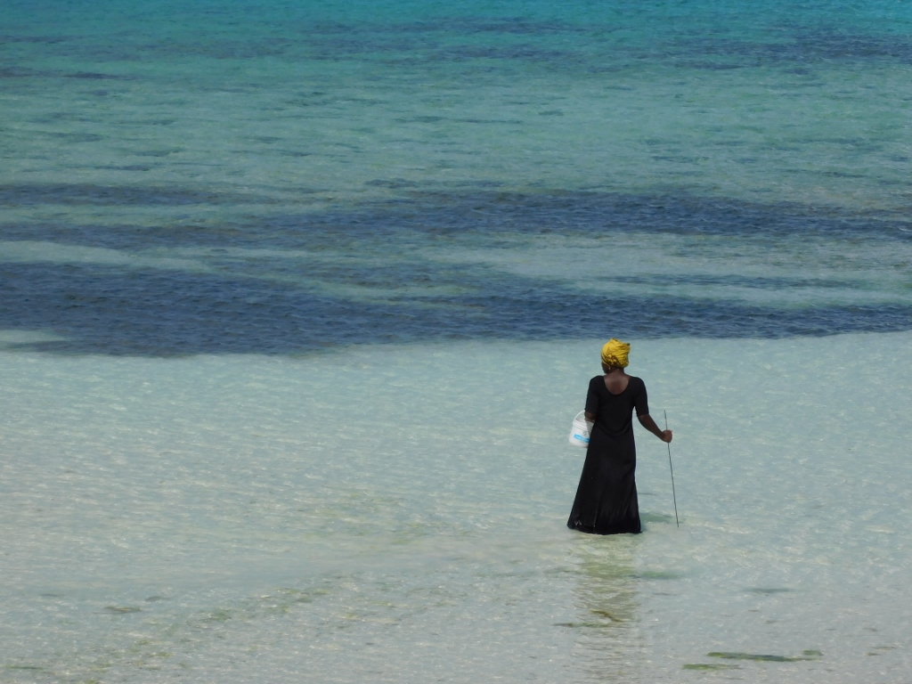 U vreme mog boravka na Zanzibaru, oseka je kretala baš nekako u vreme kada sam doručkovala. Dok bih pila kafu, voda bi se već dosta povukla, a lokalni stanovnici su sada po plićacima tražili nešto. Već sam ranije pominjala da pretpostavljam da su tražili zarobljene hobotnice ili neke školjke. Istovremeno, oni koji nisu imali obaveze jednostavno su samo šetali po plitkoj vodi.